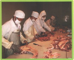 公司直屬優(yōu)質肉牛育肥場,位于平度市田莊鎮(zhèn)宮東村南1公里處,始建于2009年3月,設計存欄3000頭,現(xiàn)存欄1000余頭,占地100多畝,現(xiàn)有建筑面,18600平方米。公司擁有一批具有養(yǎng)牛經驗的管理、技術、飼養(yǎng)人員。聘請了全國養(yǎng)牛方面的知名專家作為技術顧問。養(yǎng)牛場現(xiàn)有職工23人,具有初、中級以上技術等級和從事養(yǎng)牛5年以上的工人占70%以上,有管理和技術人員5人,其中畜牧獸醫(yī)專業(yè)中、高級以上職稱3人。本公司通過食品安全認證、質量體系、無公害認證,是國家地理標志保護產品。是肉牛定點屠宰單位。被評為“島城市民最喜愛的農產品品牌”、第一批“平度好食材”。本公司肉牛養(yǎng)殖場喂牛所用飼料全部采用自己配制的飼料,主要使用大豆、玉米、麩皮,大豆經炒料機炒熟后再分碎飼喂,無任何添加劑。公司有火鍋料理店6處,安排從業(yè)人員80多人。公司擁有年屠宰加工1萬頭肉牛的屠宰生產線,嚴格執(zhí)行國家GB/T17238-2008鮮凍牛肉分割標準,并按伊斯蘭清真屠宰要求進行屠宰分割以及排酸嫩化處理。我公司生產的牛柳、西冷、肉眼、上腦、S腹肉等產品主要銷往上海,北京,南京,濟南,青島,煙臺等大中城市的四、五星級酒店,用作西餐、韓餐、日餐、中餐等深受用戶青睞。